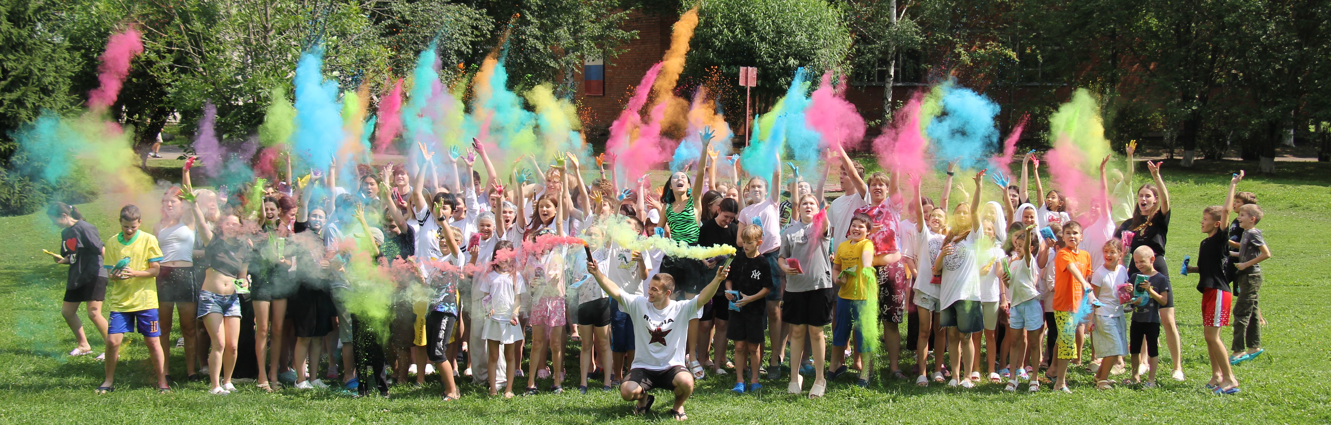 Летом в хорошую погоду мы проводим фестиваль красок Холи.