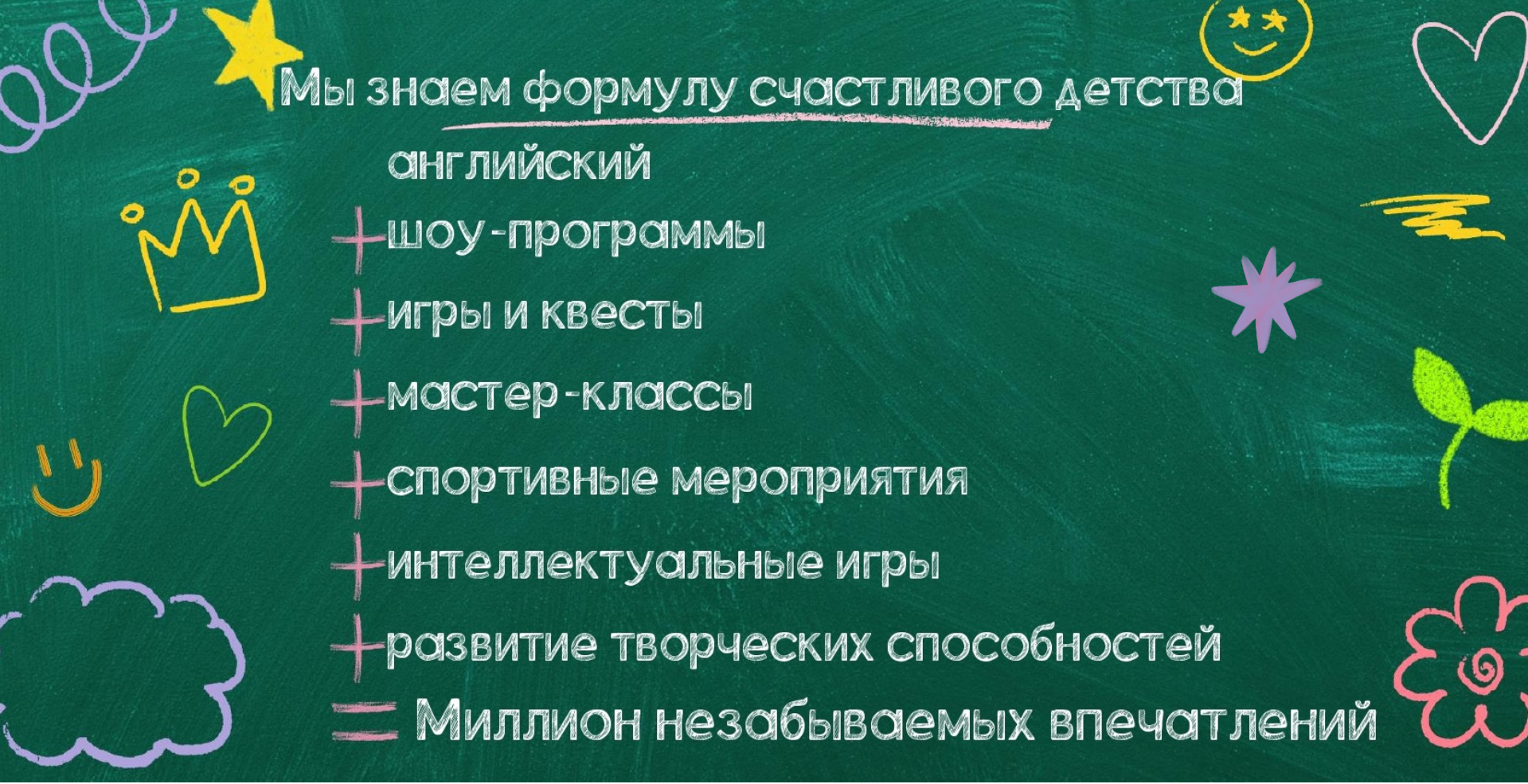 Здесь каждый ребенок сможет найти себе друзей, научиться новому, развить свои таланты и творческие способности,